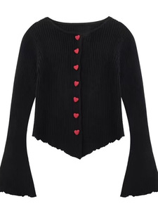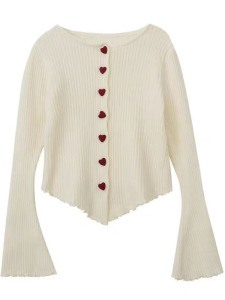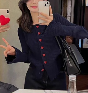 温柔风爱心扣针织开衫女上衣韩系圆领外搭纯色软糯毛衣外套女装