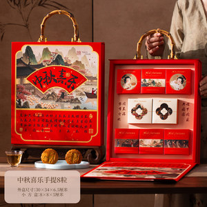 中秋节月饼礼盒包装盒空盒子新款竹节手提礼品盒8粒批发LOGO制定