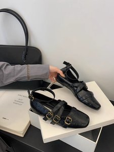ソフトレザーバージョン!レトロなインナー高さの浅い口のメリージェーンシューズ、女性用、クロスベルトバックル付きの多用途カジュアルシューズ