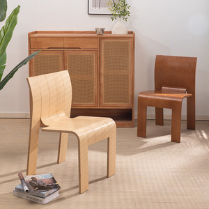 中古风餐椅家用靠背复古网红设计师单人实木黑色餐厅凳子简约椅子