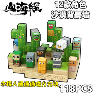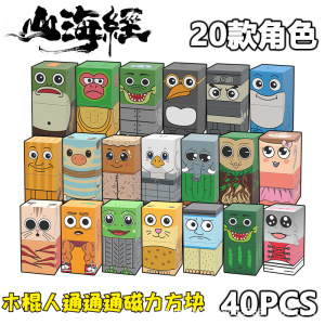 Tungtungsahur Tongtongge 木製スティックマン磁気キューブ AI 山と海の経典パズル組み立てビルディングブロックおもちゃ