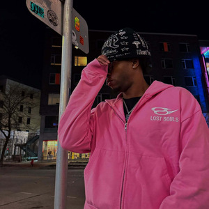 ヨーロッパとアメリカのクロスボーダーパーソナライズされたストリートレターパターンプリントパーカー、男性と女性用、トレンディなルーズフード付きジッパースウェットシャツ