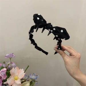 ポルカドットリボン歯コームヘッドバンド-ブラック