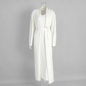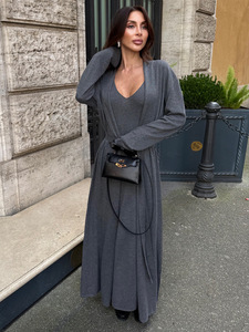 跨境针织长袖开衫+吊带连衣裙套装欧美2025秋热卖柔软罩衫套装女