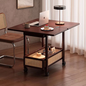 移动茶几可折叠桌子小户型客厅家用沙发阳台餐桌两用实木中古推车