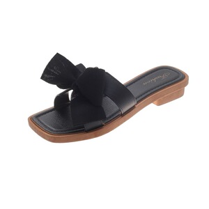 女性が外で履くためのエレガントなスリッパ、フェアリースタイル2025春の新しいファッション多用途フラットソールスリッポンリボンサンダル