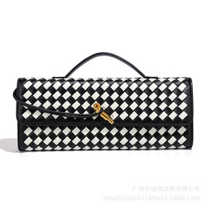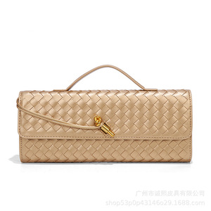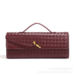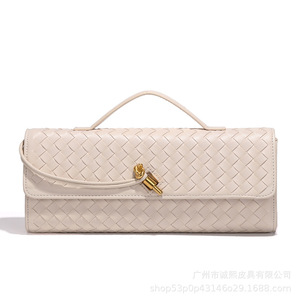 クロスボーダートレンド横型ポータブルイブニングバッグ、中古アコーディオンバッグ、高級バゲットバッグ、ショルダークロスボディバッグ、織りバッグ