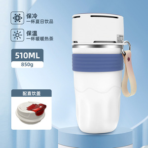 青と白の USB ホットおよびコールド カップには充電ケーブルと蓋が付属します