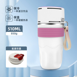 紫と白のUSBホットおよびコールドカップには充電ケーブルとカップ蓋が付属しています