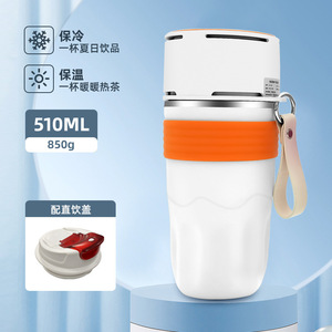 オレンジと白の USB ホットおよびコールド カップには充電ケーブルと蓋が付属しています