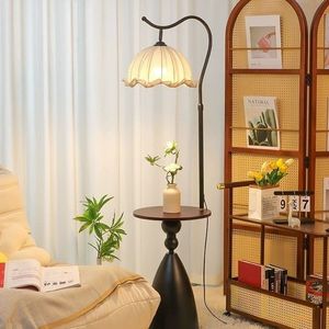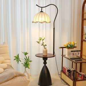 アンティークフロアランプリビングルームソファコーヒーテーブルレトロな雰囲気オールインワンアメリカンスタイルの棚寝室のベッドサイドカウンターランプ