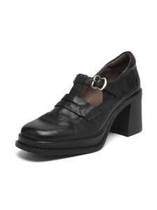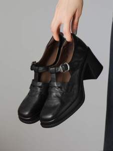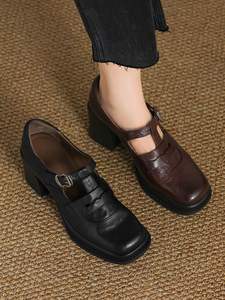 7.5cm超静音~巨舒服~新款真皮单鞋女粗跟小皮鞋复古乐福鞋高跟鞋