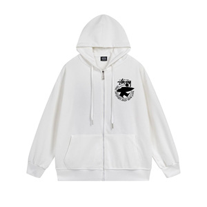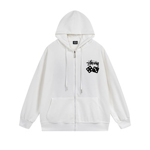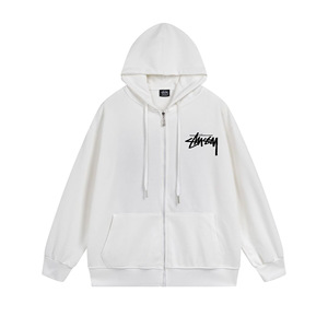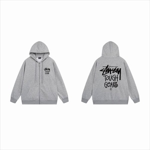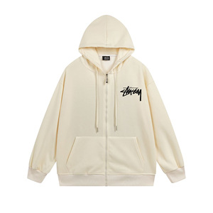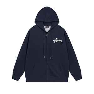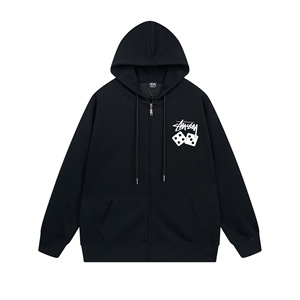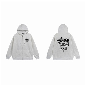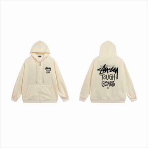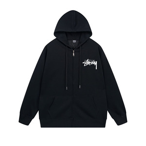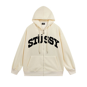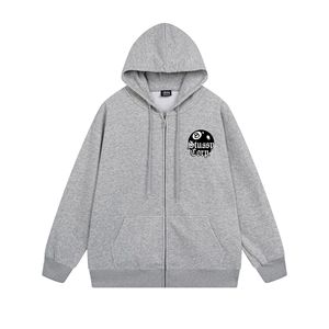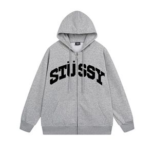 ヨーロッパとアメリカの Stussy スチューシー レタープリント ブラック 8 ジッパー プラス ベルベット フード付き秋冬スウェットシャツ メンズ レディース ジャケット