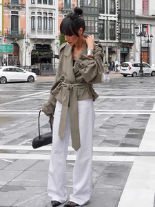 高級フレンチラーペルレースアップウインドブレーカー2025クロスボーダーヨーロッパとアメリカの通勤レディース秋のファッションジャケット