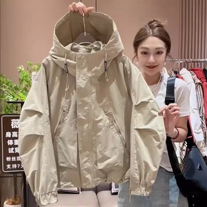 春秋新款美式休闲短外套设计感连帽冲锋衣女显瘦百搭宽松风衣