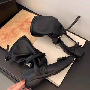 韩国小众设计凉靴子女2025新款夏天蝴蝶结芭蕾舞褶皱堆堆靴中筒靴