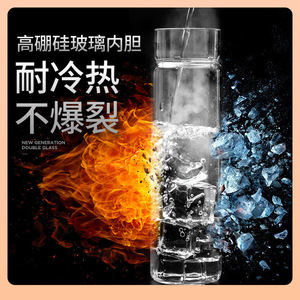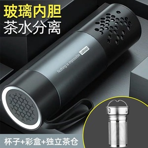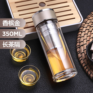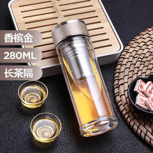 ✅礼品双层塑玻杯过滤泡茶办公茶水分离杯玻璃杯便携防摔定水杯子