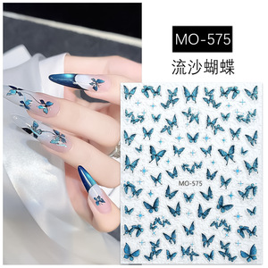 网红爆款猫眼闪蝶流沙仙气蝴蝶浮雕背胶指甲贴穿戴甲装饰品图案
