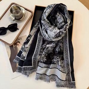 高級ヨーロッパとアメリカのファッションバージョンの二重織りシルクカシミヤスカーフ、女性用ロングスカーフ、エアコンショール、旅行用アウターウェア