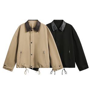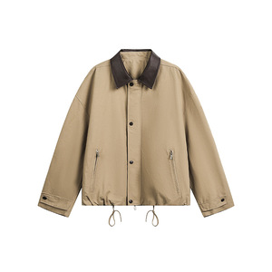 美式复古翻领斜纹帆布外套秋季新款时尚痞帅简约情侣夹克外套宽松