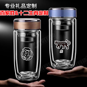 高硼硅玻璃水杯双层车载鹅蛋杯批发茶水分离杯简约男士泡茶杯礼品