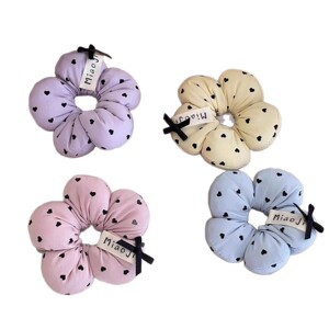 女性用プリントラブ綿入りヘアゴム、女の子用スイートリボンヘアゴム、ヘアゴム、ヘアゴム、髪を傷つけない