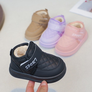 2025 綿の靴新しい冬の男の子のベビーシューズプラスベルベット暖かい子供のスノーブーツ女の子カジュアルショートブーツトレンディな