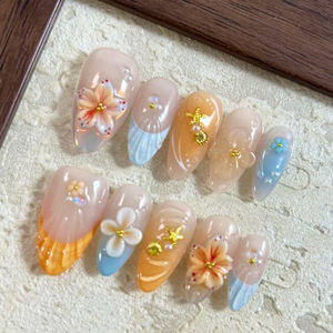 オーシャンアイスフラワーブルーミングクロスボーダー外国貿易ウェアラブルネイルインハイエンドサンセットマニキュアパッチシェルホットガール夏