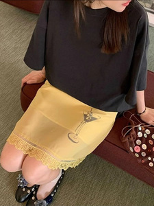 ANGRY RABIT夏日微醺 原创设计酒杯印花蕾丝边撞色半身裙