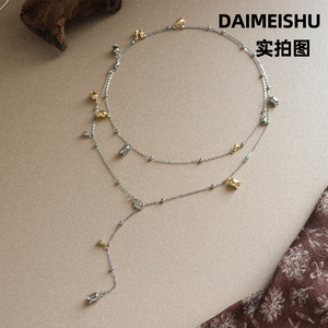 フレンチレトロな絶妙な2色のスズランの花のロングネックレスアクセサリー女性用ライトラグジュアリーニッチハイエンドスタッカブルロングネックレス