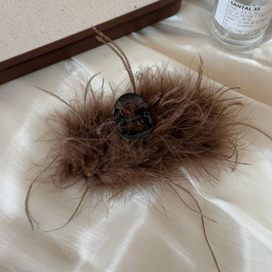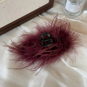 ヘアボリュームを増やす大きな羽根グリッパー、高級感のある新しい後頭部ヘアピン、ヘアアクセサリー、女性用オーストリッチフェザーシャーククリップ
