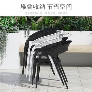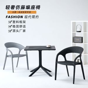 屋外一体成型プラスチック椅子防水日焼け止め模造籐背もたれ椅子屋外中庭ガーデンヴィラティーテーブルと椅子