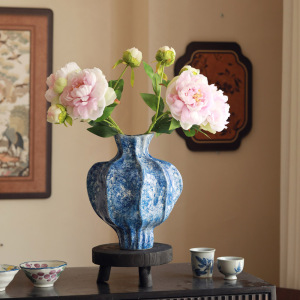镧林新中式陶瓷花瓶客厅插花民宿酒店高级感家居桌面水培花瓶品月
