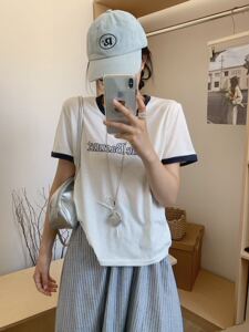 韩国东大门八奶短袖T恤 2025夏季新款大字母印花设计感女装T