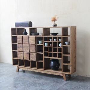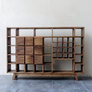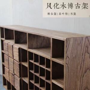 侘寂风方寸格子茶杯博古架老榆木中古风陈列展示柜茶室茶壶架