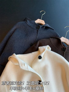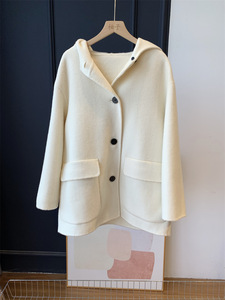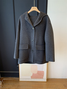厚手で実用的!アルパカシルク両面ウールフード付きウールコートショートウールコート G070507