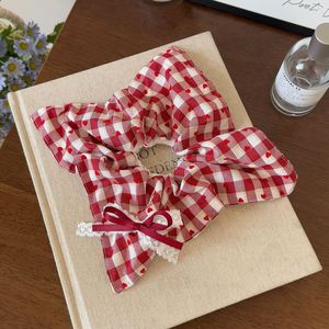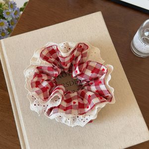 赤いチェック柄のラブハートヘアゴム、爽やかで甘いレースのヘアロープ、ポニーテールスクエアスカーフ、ヘアロープ、女性用ゴムバンド