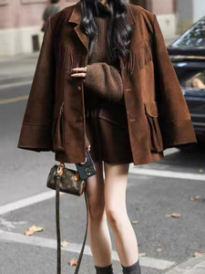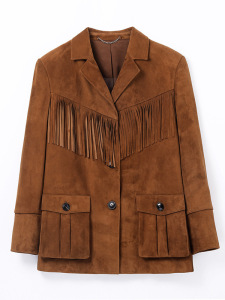 本革ジャケット HN4178 第一層ヤギスエードヨーロッパとアメリカンカジュアルデニムスタイルタッセル立体ポケットレディーススーツ
