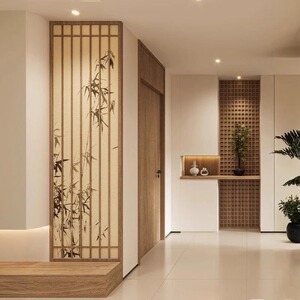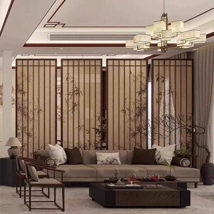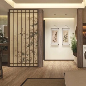 格栅隔断宋代美学客厅进门遮挡屏风入户正对门中式实木推拉式玄关