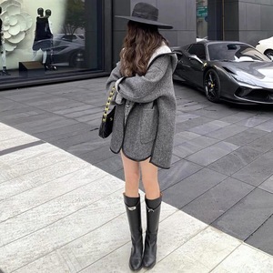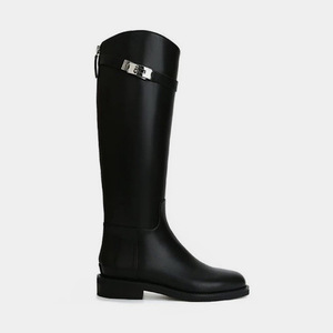 跨境专供~秋冬款Kelly扣平底靴子粗跟圆头厚底加绒中高筒骑士长靴