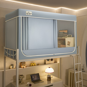 2025新款a类植绒五面强遮光上下铺学生蚊帐0.8m0.9米防隐私床帘
