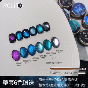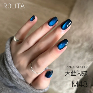 蓝黑色爆闪玻璃珠猫眼胶紫色罐装光疗指甲油胶脚趾美甲店专用6色