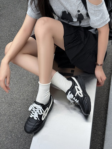 白敬亭同款真皮阿甘德训鞋黑色复古流浪鞋女运动休闲百搭小白鞋