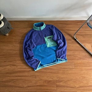 pat@Pullover ポーラーフリース コントラストカラー アウトドア スタンドカラー フリースジャケット マウンテンスタイル 保温性のあるスウェットジャケット コントラストデザイン