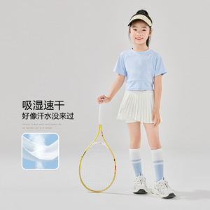 女童夏季速干套装2025新款冰丝凉感薄短袖百褶短裙中大童运动裙裤