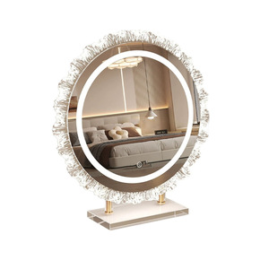 太阳花化妆镜镜子水晶亚克力智能化妆带灯三色变光桌面梳妆台卧室
