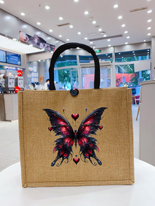 跨境热销款麻布手提袋大容量时尚印花上班通勤亚麻包包手拎托特包