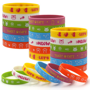 国境を越えた人気のかわいい猫要素シリコンブレスレットカラフルなパターンのラバーリストバンド工場直販