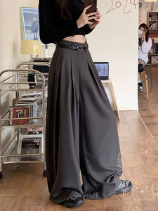 女性のためのハイエンドのドレープグレーのスーツパンツ夏の新しいハイウエストストレートワイドレッグパンツカジュアルパンツフロアレングスパンツ