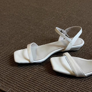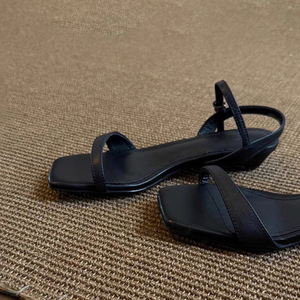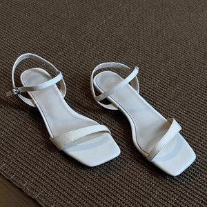 现货~法式气质方头平底凉鞋露趾粗跟一字扣带凉鞋夏季2025新款